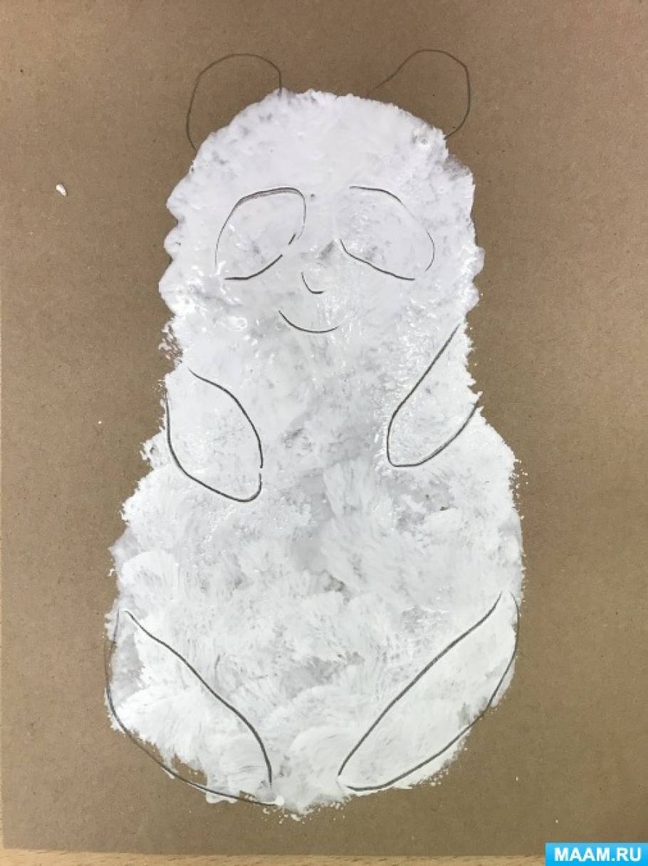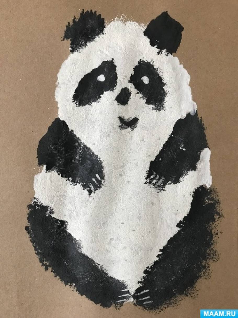 Мастер-класс по аппликации с элементами рисования «Панда» для старших дошкольников Панда — самое известное животное на земле. Панда похожа на маленького неуклюжего медвежонка. У панды уши, плечи, грудь и лапы — чёрного.