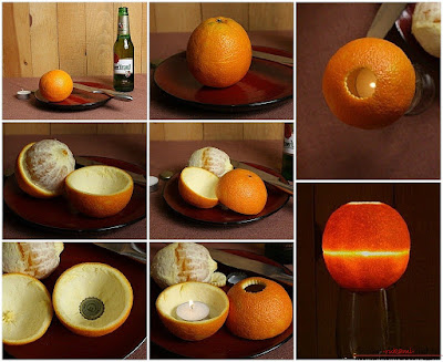 Можно обойтись без предварительной сушки цитрусовых и сделать замечательные и очень романтичные подсвечники.Которые подойдут для любого праздника.