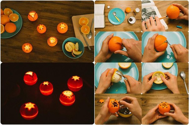 Можно обойтись без предварительной сушки цитрусовых и сделать замечательные и очень романтичные подсвечники.Которые подойдут для любого праздника.
