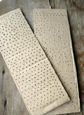 Вырезаем из картона два прямоугольника и делаем в них дырочки.