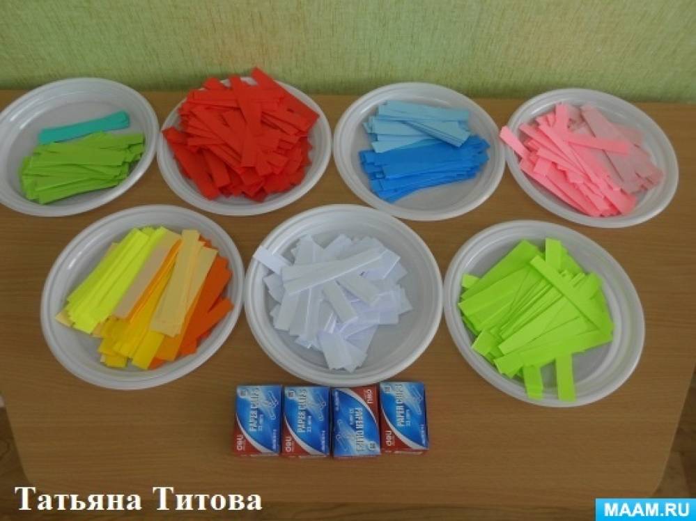 -Заготовить полоски из разноцветной бумаги длиной 6-8 см, а шириной 2 см.