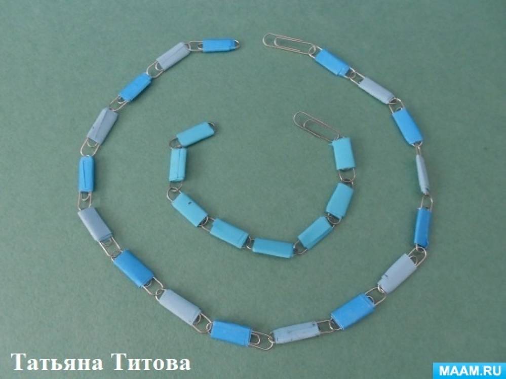 — Намазать бумажные полоски клеем и обмотать вокруг скрепок, кроме первой скрепки (застежка).