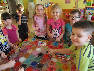А дальше мы добавили акварельных красок и сделали цветные узоры!