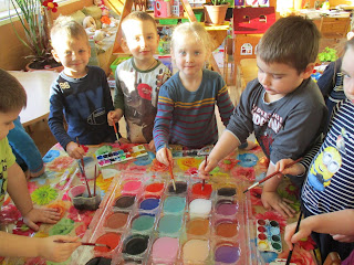 развести гуашь в воде и этим полить горку? пачкать будет :dada: