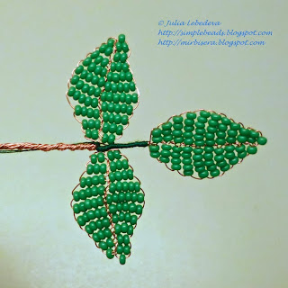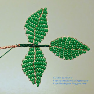 Концы проволок по окончании работы скрутите вместе. Для одной веточки понадобится 5 листочков.