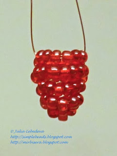 Итогом этой манипуляции должны стать два яруса малины, состоящие из одной и трех бусин.