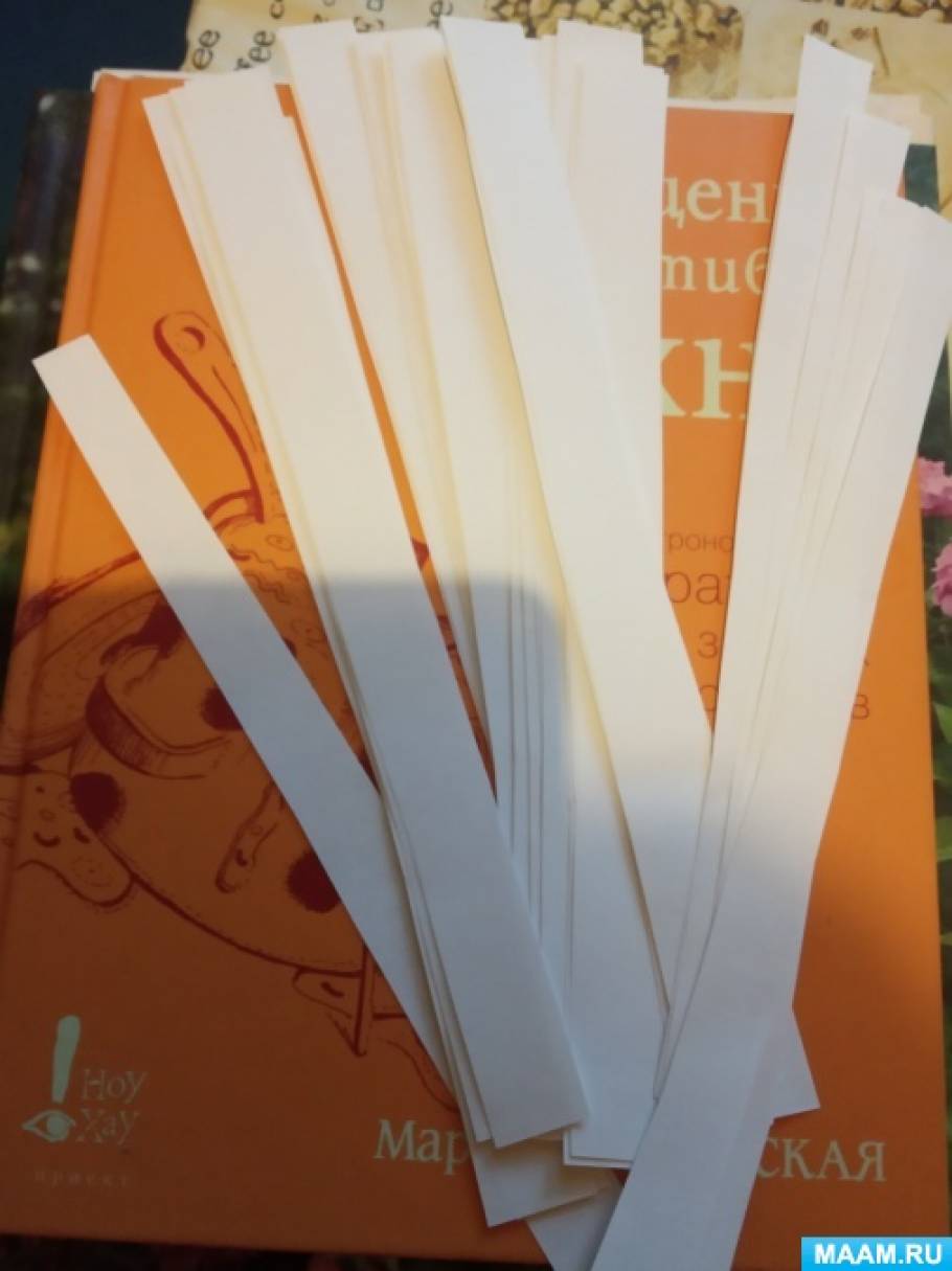 - Для начала нужно отрезать 4 длинные полоски от листа А4 шириной примерно равной ширине большого пальца. Затем так же следует отрезать 4 короткие полоски от листа А4 с аналогичной шириной;