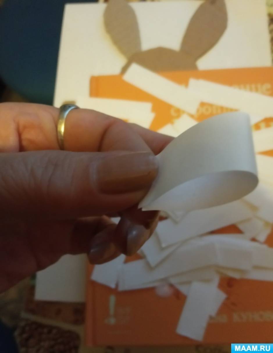 - Нарисовать, а затем вырезать из цветной бумаги детали для мордочки кролика или просто ушки;