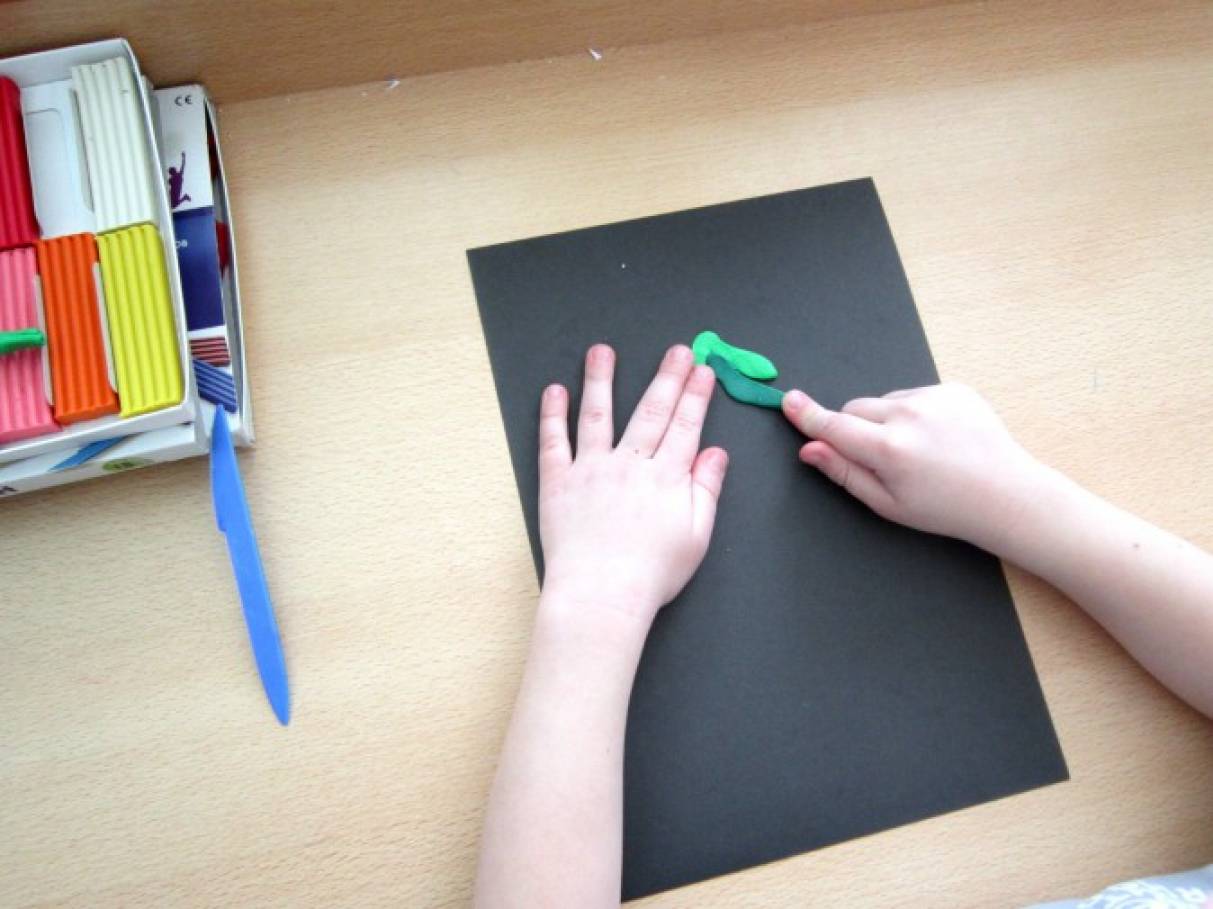 Для работы потребуется темный (черный, темно-синий, темно-фиолетовый) картон, пластилин, стеки, подкладной лист, хорошее настроение и мотивация к работе.