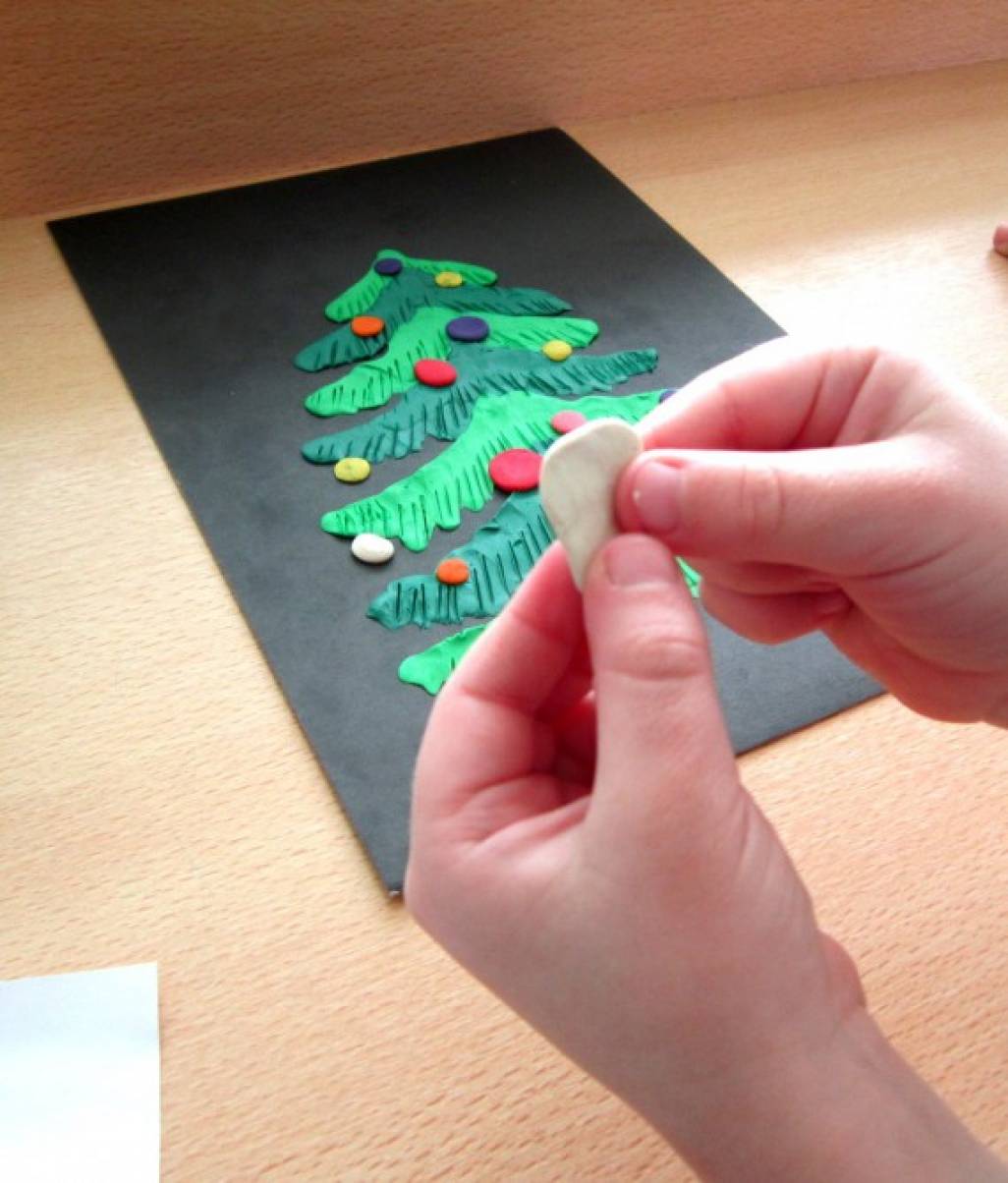 Мастер-класс «Рисуем пластилином новогоднюю елочку»