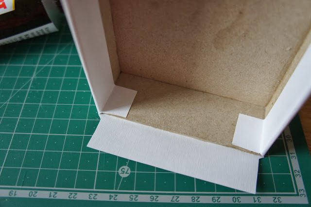 Для прочности я проклеила углы с внешней стороны тонкой, но прочной бумагой (идеально для этих целей подойдет крафт-бумага, т.к. она прочная и тонкая).