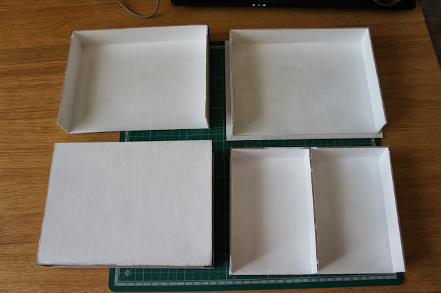 Окрашенные ярусы высохли – можно склеивать… Только предварительно замерьте внутреннее пространство (пока оно более-менее доступно) для дальнейшего изготовления ящиков.