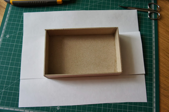 Для того, чтобы обклеить боковины коробки снаружи, мы выкраиваем одну длинную полосу.