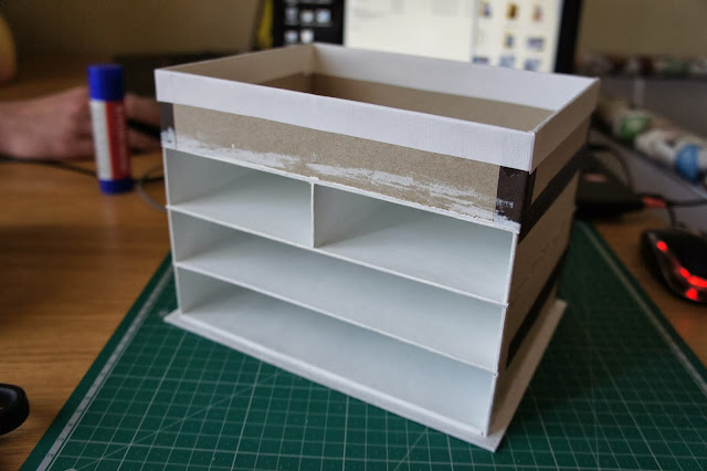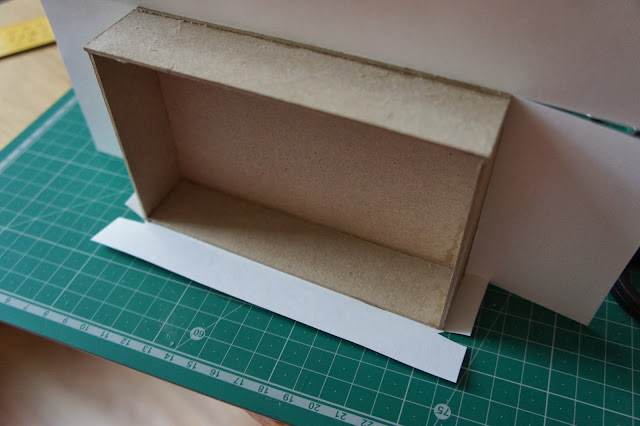 Когда полка вклеена, осталось обклеить внутренние боковые стенки.