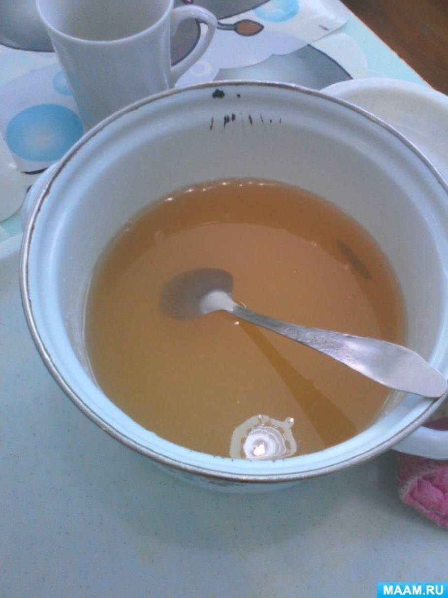 6. Проверяем, чтобы сироп был горячим, иначе кристаллы не будут расти. Разливаем наш сироп по стаканам или банкам. Лучше брать прозрачную посуду, иначе дети будут по несколько раз на дню доставать палочки из емкостей и смотреть, что же наросло.