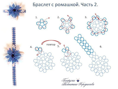 Ромашки из бисера браслет схема