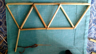 3. Нанизываем ещё три раза по две трубочки. Нанизываем ещё одну трубочку. Получили фигуру, как на фото- теперь важно разобраться, что с чем связать.
