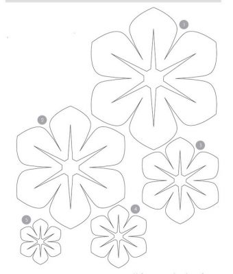 Прежде чем приступить к изготовлению объемных цветов из фетра, следует сделать шаблон. Для этого распечатайте с помощью принтера на бумаге формата А4 выкройки цветов. Определившись с размером будущей поделки, вырежьте шаблон по контуру.