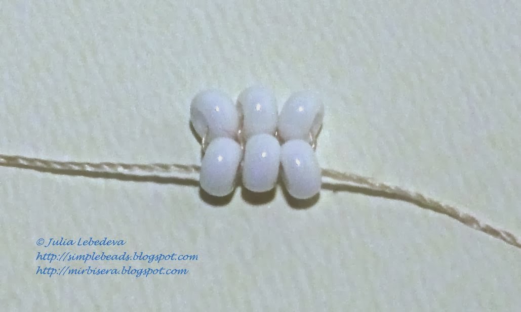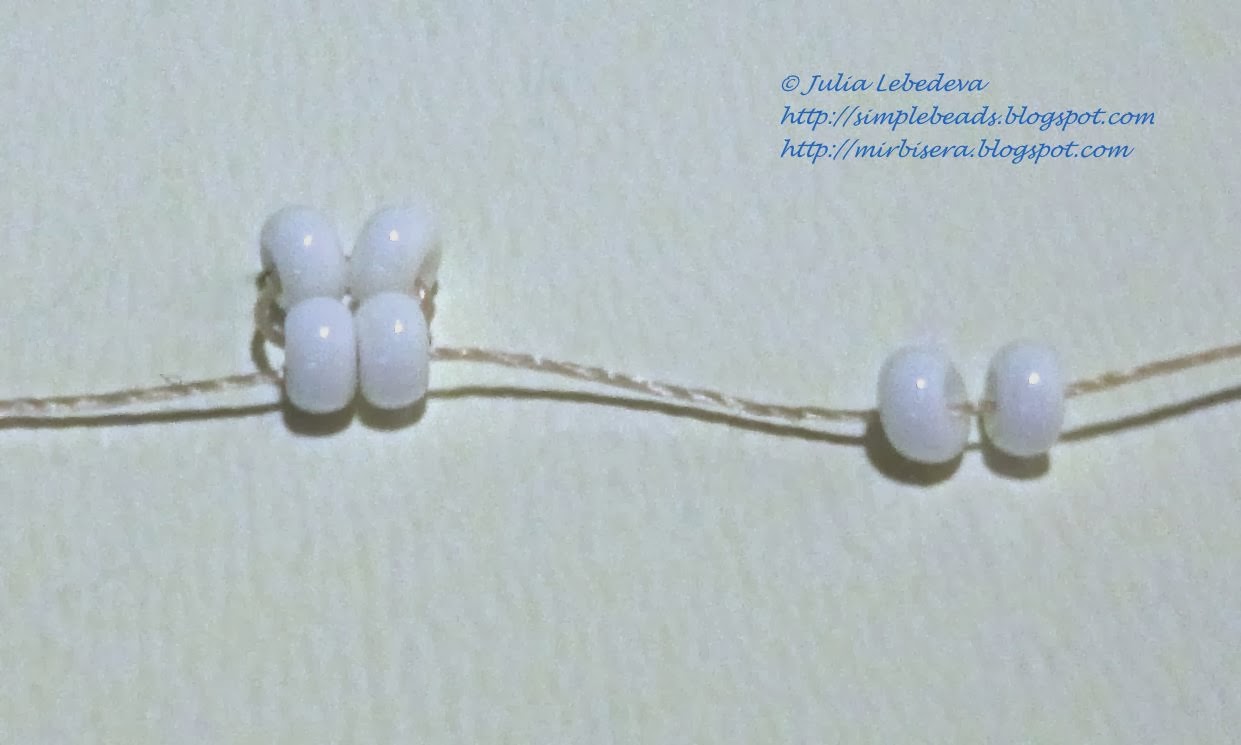 Далее набираем на нить ещё 2 белые бисеринки.