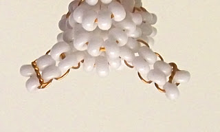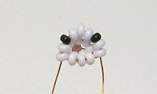 Для верхнего яруса набираем бисеринки в следующей последовательности: 2 белые, 1 чёрная, 3 белые, 1 чёрная, 2 белые.