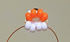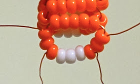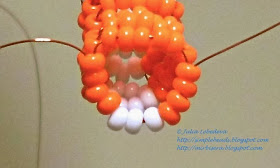 Нижний ярус — набираем бисеринки в следующем порядке: 4 оранжевые, 3 белые и ещё 4 оранжевые.
