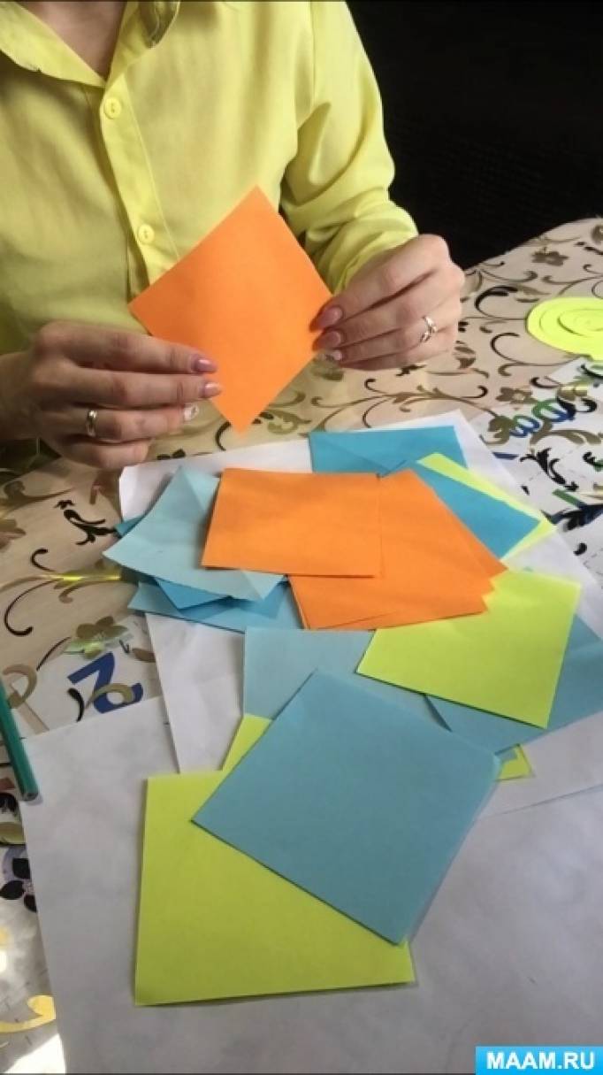 Из цветных бумаг вырезаем квадраты 10X10см.