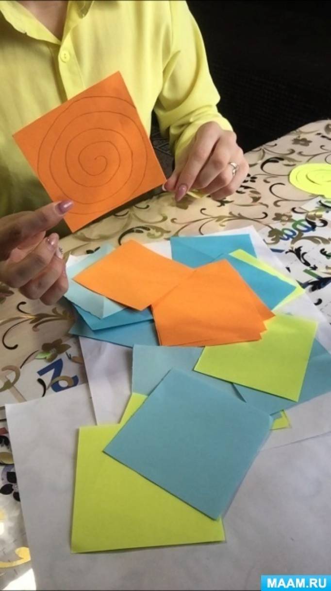 От центра квадрата к внешнему краю простым карандашом чертим спираль и вырезаем спиральки.