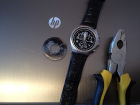 Цельнометалический корпус, несъемное стекло (об этом я узнал недавно), замечательное крепление для ремешка. Всё это было здорово и я настолько привык к ним за 2,5 года, что их нелепая неполноценная поломка очень расстроила меня. Жена говорит: «Да выбрось ты их, плевать!», — а мне жалко, я же хотел их на долгие годы сохранить, ну хоть подольше чем на 2,5 года. С таким же успехом можно было купить в любом ларьке «часы» за 500 рублей. Самое смешное, что я очень хвалил эти часы и правда, они были хороши до тех пор, пока не села батарейка и мне потребовалось ее заменить.