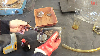 1. Смесь искомого растворимого металла и нерастворимой керамики заливают раствором этилового спирта и йода (5-10%).