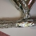 Фольга — материал, который дома у всех есть. Любая хозяйка то же мясо с овощами наверняка может запечь в фольге. Однако фольга может использовать и не для пищевых целей. Если отрезать хороший кусок фольги — то можно сделать ребенку шлем воина на утренник. Просто обмотайте вокруг головы, верх фольги вытяните вверх и в таком виду снизу заложите картон — получится хороший шлем.