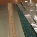 По этим отметкам нужно будет отрезать длинные полоски около 3 см в ширину. Работать с фольгой необходимо аккуратно, так как она легко рвется, а для создания изящного подсвечника необходимы целые полосы.