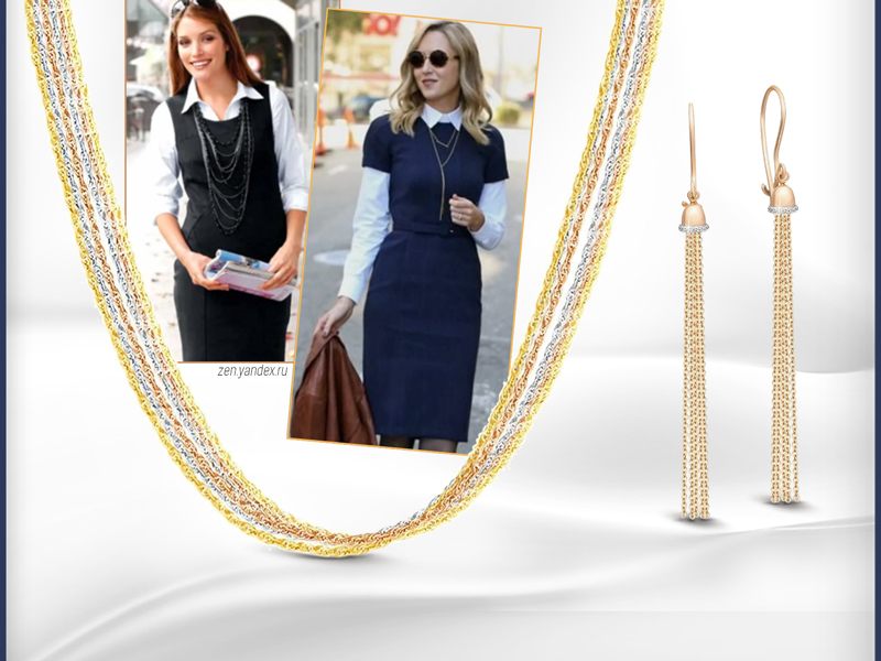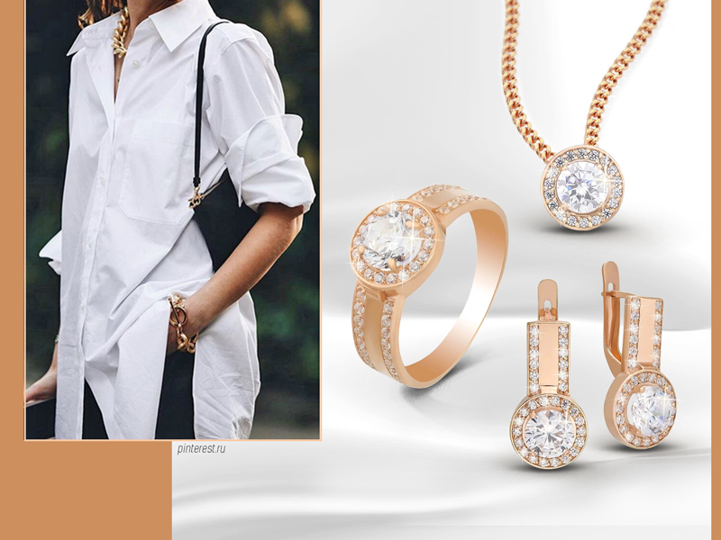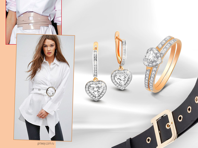 Белая рубашка отлично сочетается как с небольшими, минималистичными украшениями, так и с более грубыми и крупными. Так, её можно отлично сочетать с небольшими подвесками из золота, а также с тонкими, плетеными браслетами из дорогих металлов.