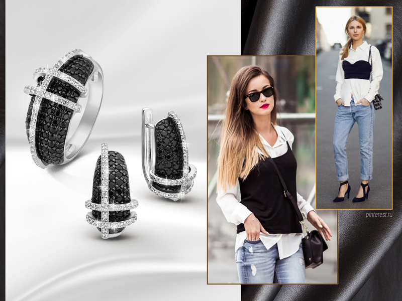 Чёрно-белый тандем всегда смотрится выигрышно и заметно. Тёмная жилетка или топ поверх белой рубашки помогут создать яркий и запоминающийся образ, который прекрасно подойдёт для похода в театр или на выставку.