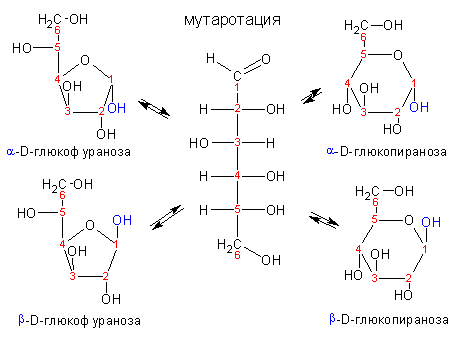 Оказалось, что причиной этого является взаимопревращение форм глюкозы друг в друга (различных циклических в линейные и наоборот), называемое мутаротацией: