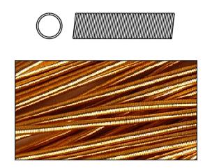 Хороша для заполнения работы, оформления таких деталей как бусины, жемчуг или камни. Но изделие получается очень нежным и для начинающих работа с ней может показаться сложной. Изготовлена из круглого сечения проволоки, но меньшей толщины, закрученной в спираль.