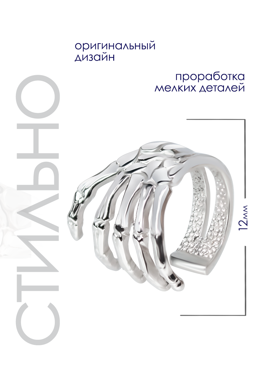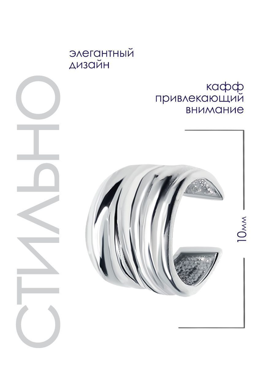 Этот кафф станет ярким акцентом на любом событии и подчеркнет ваш стиль и хороший вкус. Изделие выполнено из серебра 925 пробы, что гарантирует его прочность и надежность в использовании. Благодаря покрытию родием, оно не потускнеет со временем и сохранит свой блеск на долгое время.
