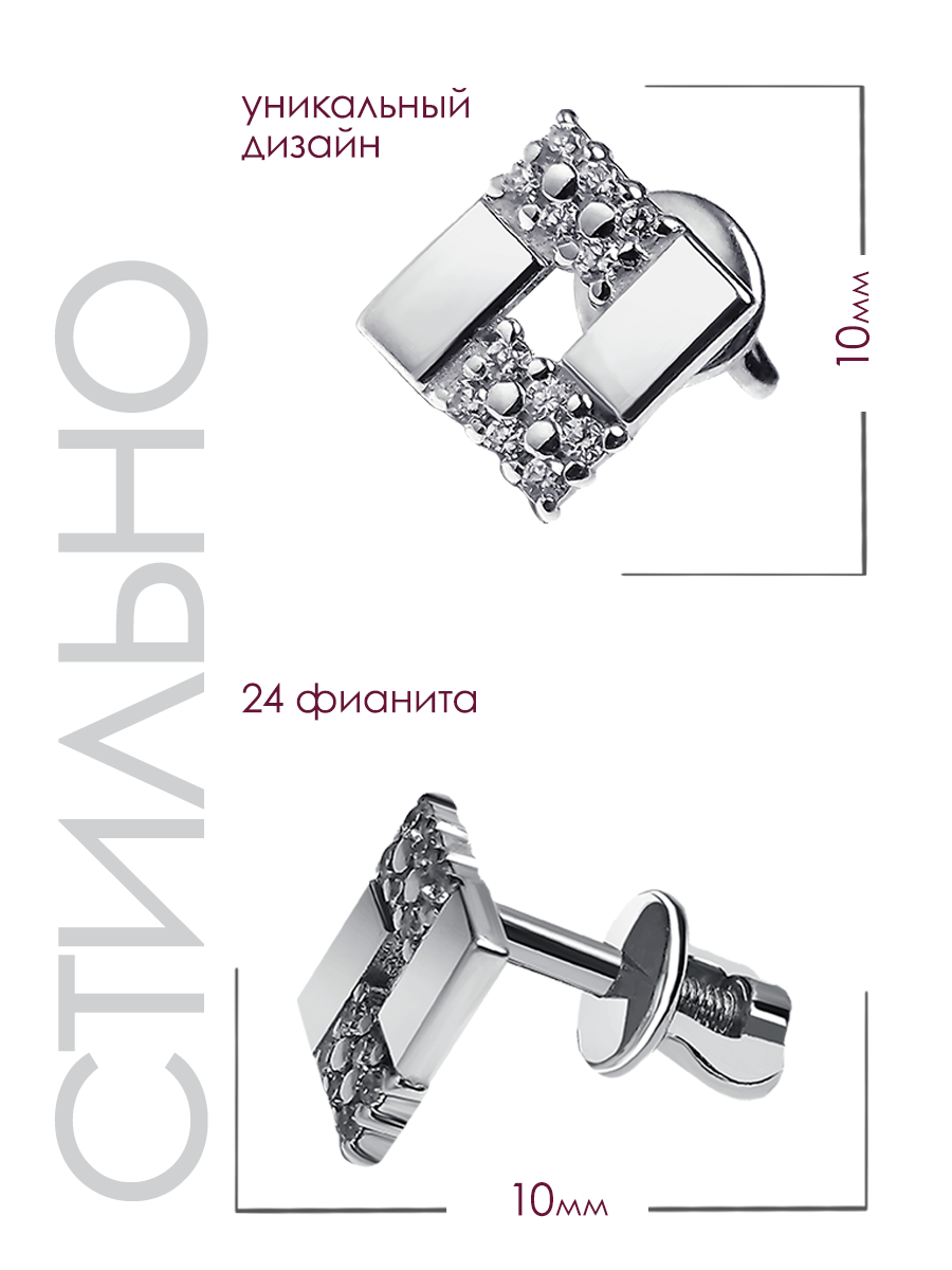 Обратите внимание на дизайнерские золотые серьги пусеты с фианитами. Изделие выполнено из красного золота 585 пробы. Произведено в России. Высота серег – 7,8 мм. Ширина серег – 5,8 мм. Длина штифта – 9 мм. Рабочая глубина штифта – 7 мм.