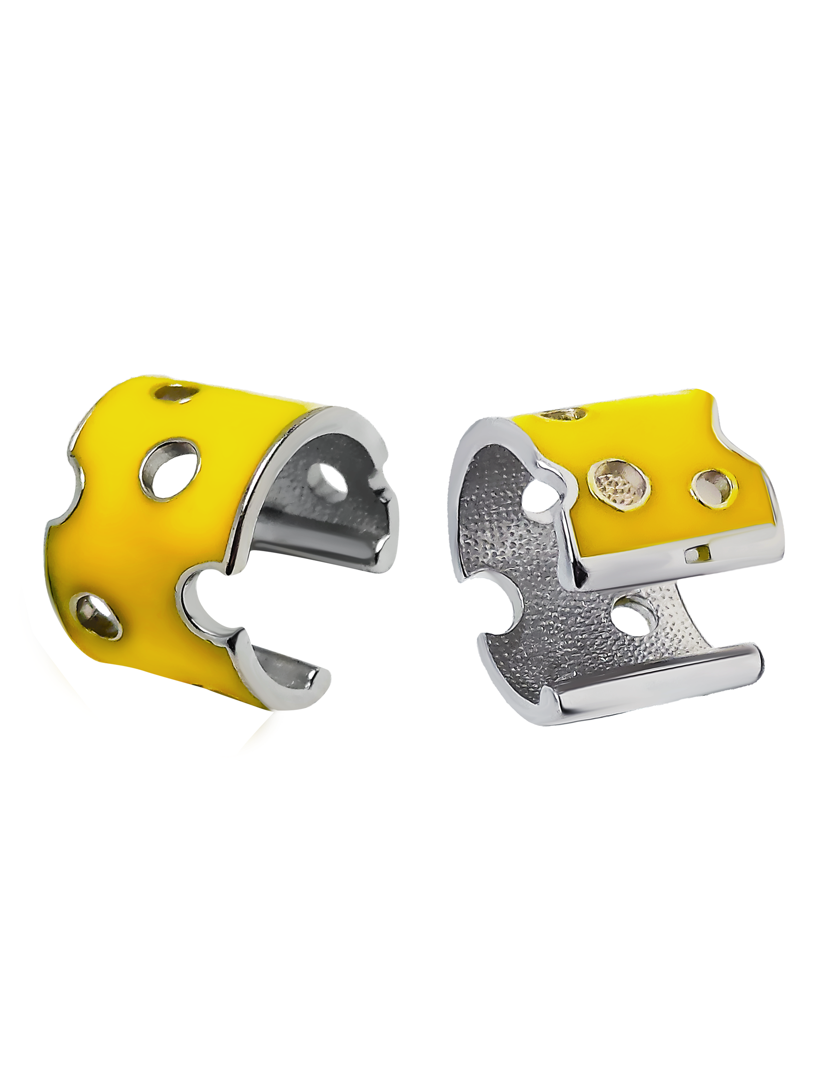Важно, что даже крупные каффы не оттягивают ухо, позволяя носить украшение долго, а полукруглое крепление обеспечивает надёжную посадку. От клипс подобные украшения отличаются приятностью использования (не давят на мочку и край уха), крепление к уху надежное и каффы не теряются и не спадают