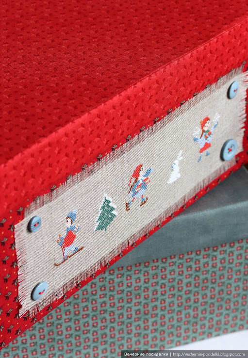 AliceKiss, я бы тоже обклеила, была такая мысль. Хорошо бы смотрелась крафтовая бумага, а поверх неё вышивка также, как я и сделала. Но у меня такой бумаги нет, в праздники всё закрыто. в общем, махнула на эту идею рукой и сделала из ткани. 🙂