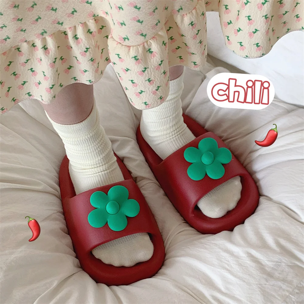 Тапки Ins женские с 3D цветами, летние Нескользящие тапочки для дома и улицы, мягкая толстая подошва, тапочки для душа, красные