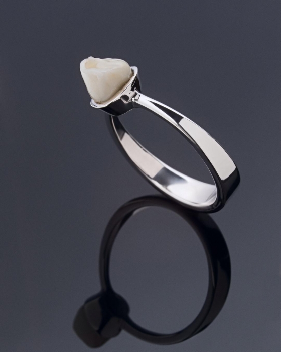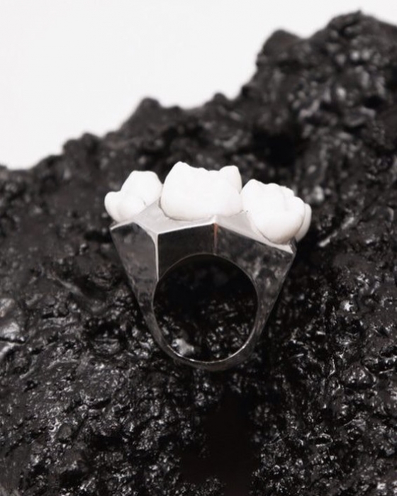 Материалы для первых украшений создатель OSSA собирал через объявления в газетах: вставками для подвесок и колец служили человеческие зубы и коронки. Сейчас Николай делает менее экстремальные аксессуары, используя серебро, сапфиры, корнерупин и раухтопазы. Но чужой передний мост можно по-прежнему оформить по предзаказу.