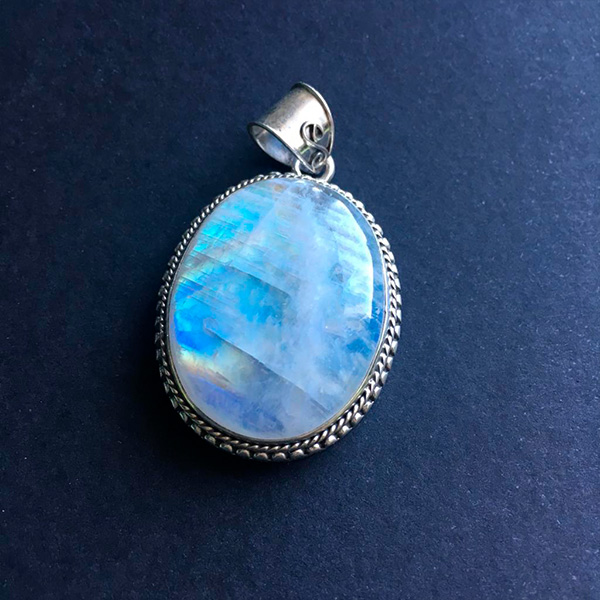От того как носить лунный камень, зависят и его способность помогать владельцу, и эффектность самого украшения. Характеристика его как неброского, имеющего блеклый цвет минерала не позволяет сочетать такую вставку с золотой оправой. Очень хорош лунный камень в серебре с чернением: тускловатый блеск металла не подавляет материал вставок. Радужные переливы лабрадорита или голубоватое сияние адуляра удачно подчеркиваются спокойным цветом металла.