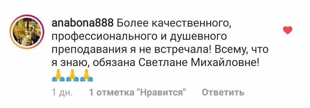 Более качественного, профессионального и душевного преподавания я не встречала! Всему, что я знаю, обязана Светлане Михайловне!