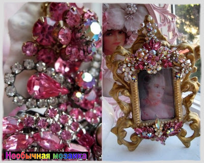 А теперь полюбуйтесь на декорированные старой бижутерией рамочки зеркал, картин, фоторамки и даже подносы.