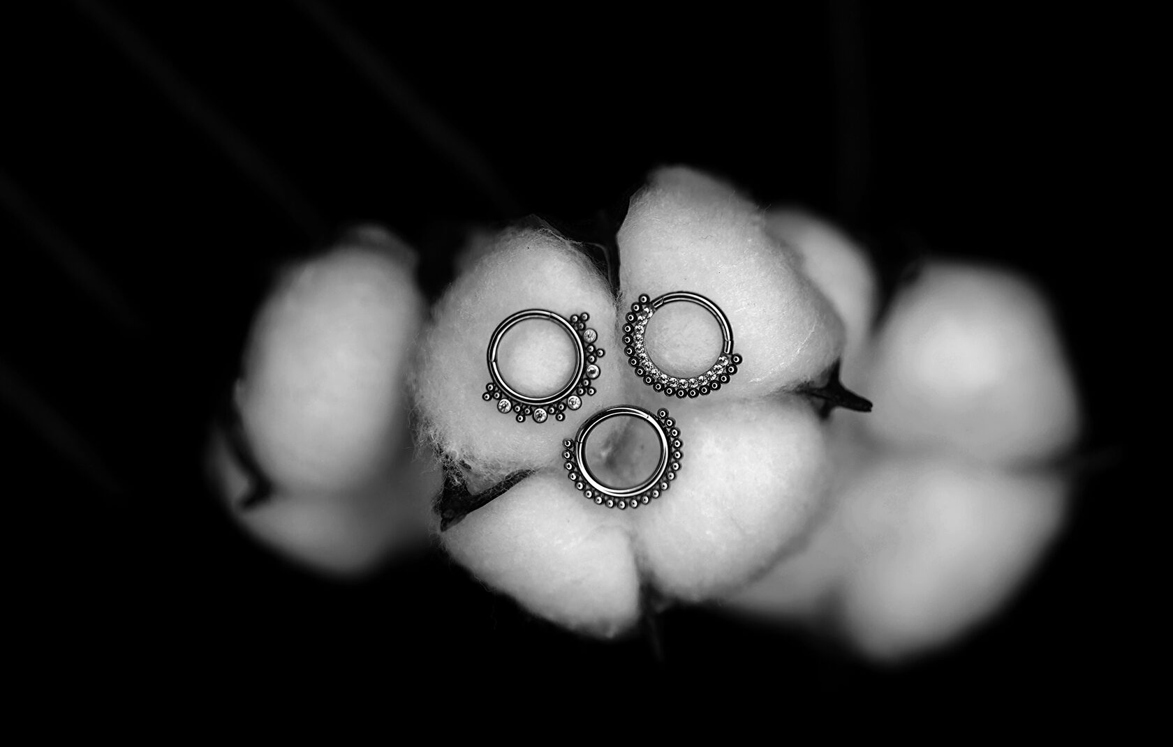 Также встречаются украшения для пирсинга без камней и стразов — в виде шаров, конусов и шипов. Применяются накрутки для оформления в основном лица или на плоских поверхностях.