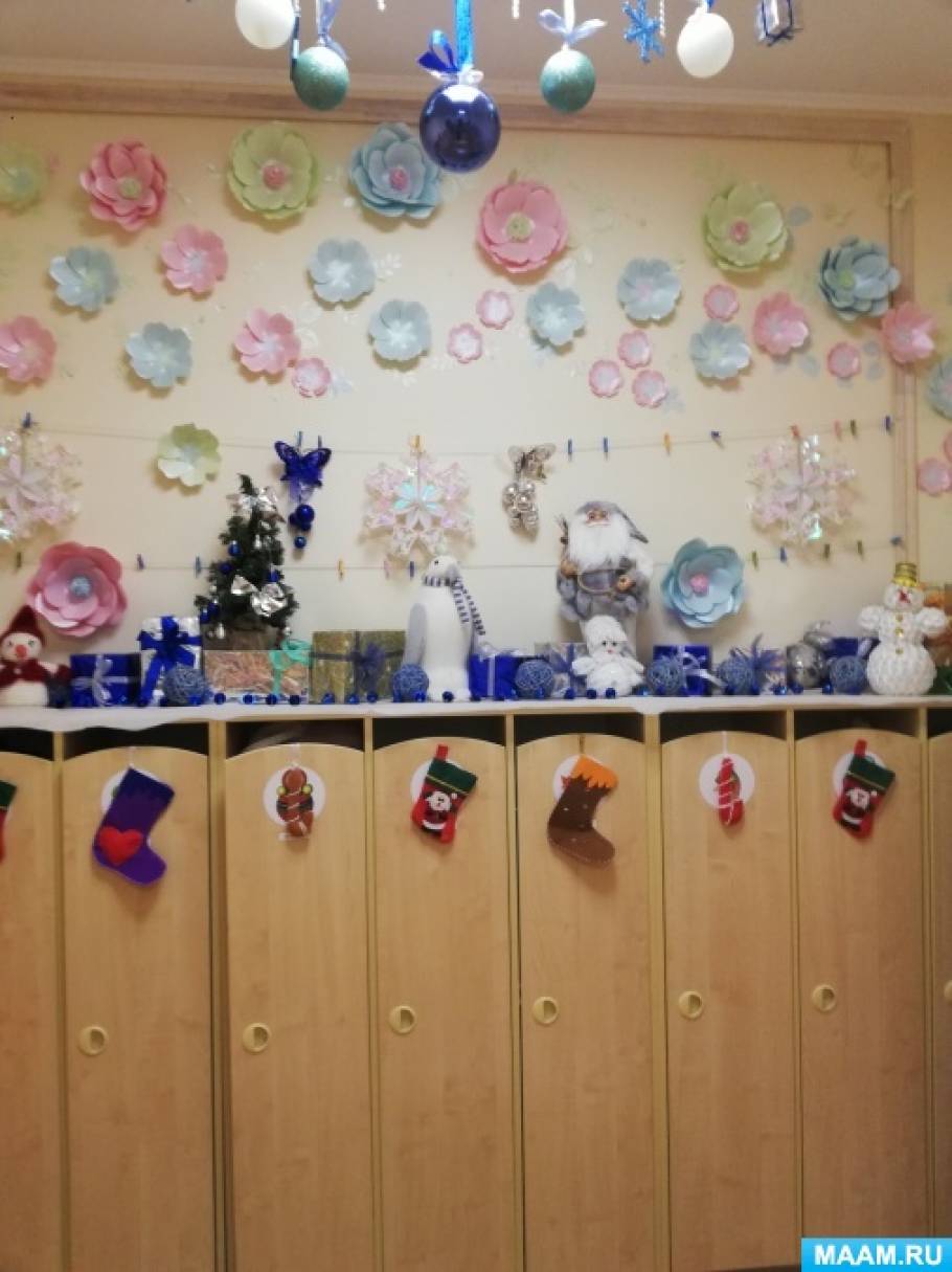 Новогоднее оформление групповой комнаты «Новый год стучиться в двери»