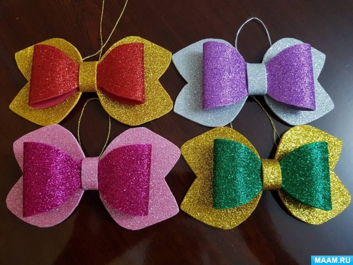 Мастер-класс по изготовлению ёлочных украшений из глиттерного фоамирана «Новогодние бантики».