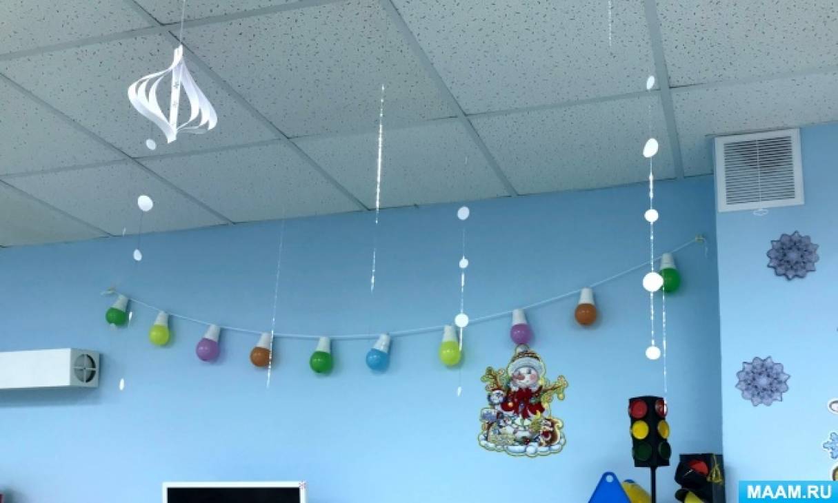 Как только наступает зима, многие начинают задумываться об оформлении к самому долгожданному и волшебному празднику Новому году. Каждый год хочется чего-то необычного, интересного и очень красивого. Предлагаю вашему вниманию мастер-класс по изготовлению новогодней гирлянды, которая украсит любое помещение,особенно групповое или участок на улице, а самое главное — она безопасна и не требует особых усилий.