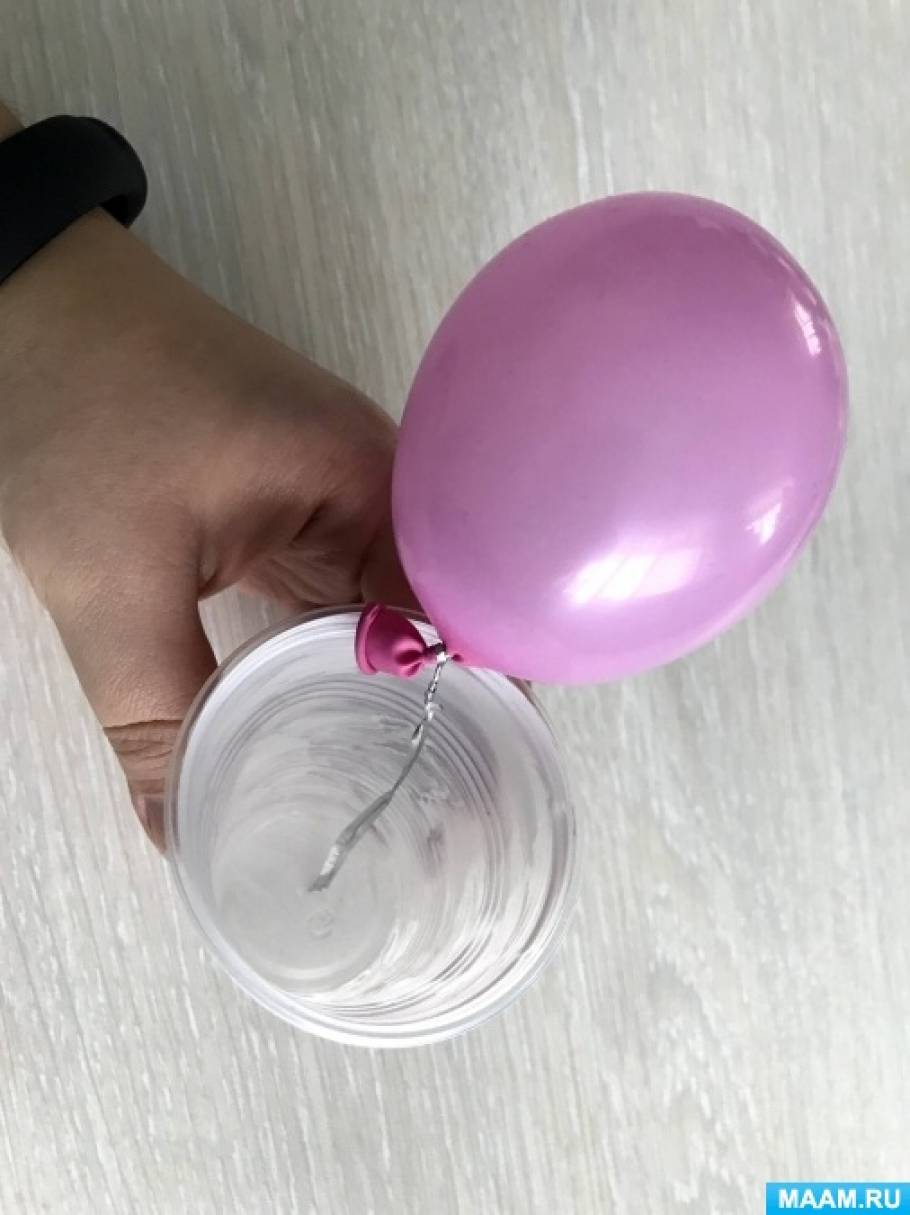4. Далее вставляем шарик с твист-лентой в прорезь и подтягиваем.