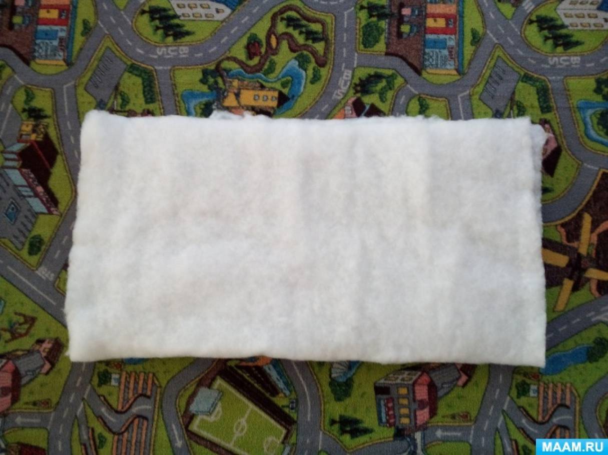 Шаг 1. Берём кусок синтепона и складываем его пополам.